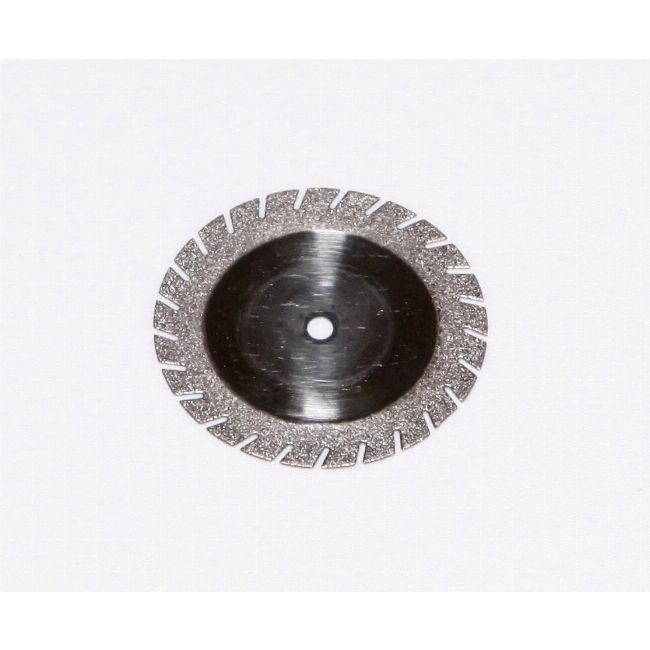 Диск сепарационный алмазный с зубцами двусторонний, мелкая зернистость, 22x0,15 мм, без дискодержателя, предназначен для гипса и огнеупорных моделей, не рекомендуется для керамики.