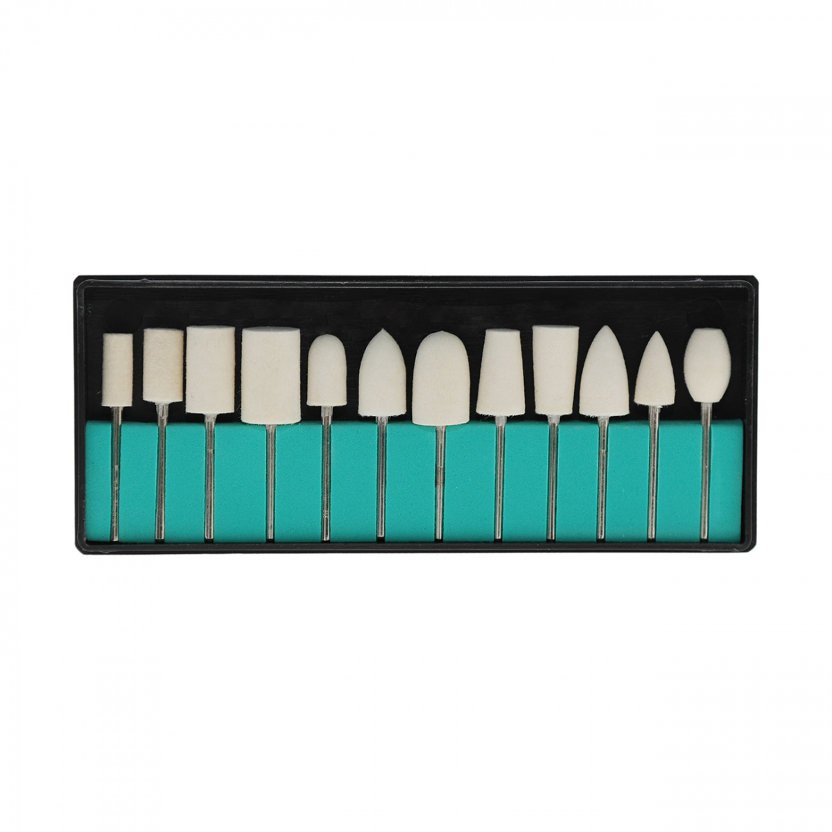 Идеально подходит для завержающей шлифовки. В наборе присутствуют фильцы различной формы - от мягкой округлой до конусобразных и насадок в виде колеса.