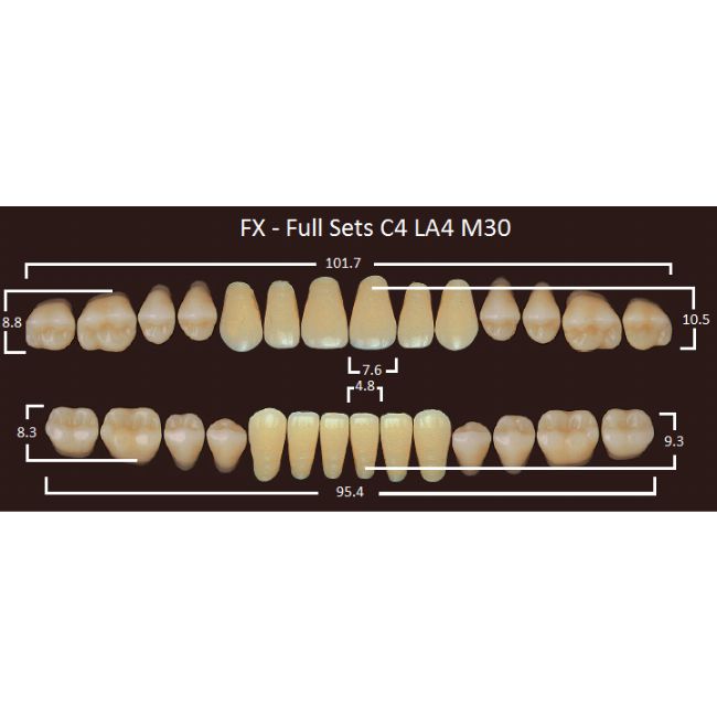 FX Full Sets - зубы акриловые двухслойные, полный гарнитур: фронтальные верхние FX - фасон C4, фронтальные нижние FX- фасон LA4, боковые FX - фасон М30, цвет A2 (28 шт.), Yamahachi ((Япония)