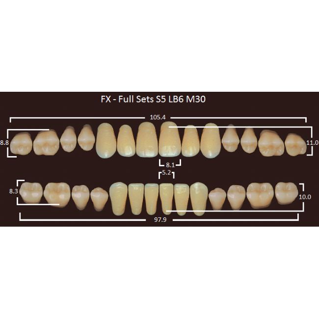 FX зубы акриловые двухслойные, полный гарнитур (28 шт.) на планке, D2, S5/LB6/M30